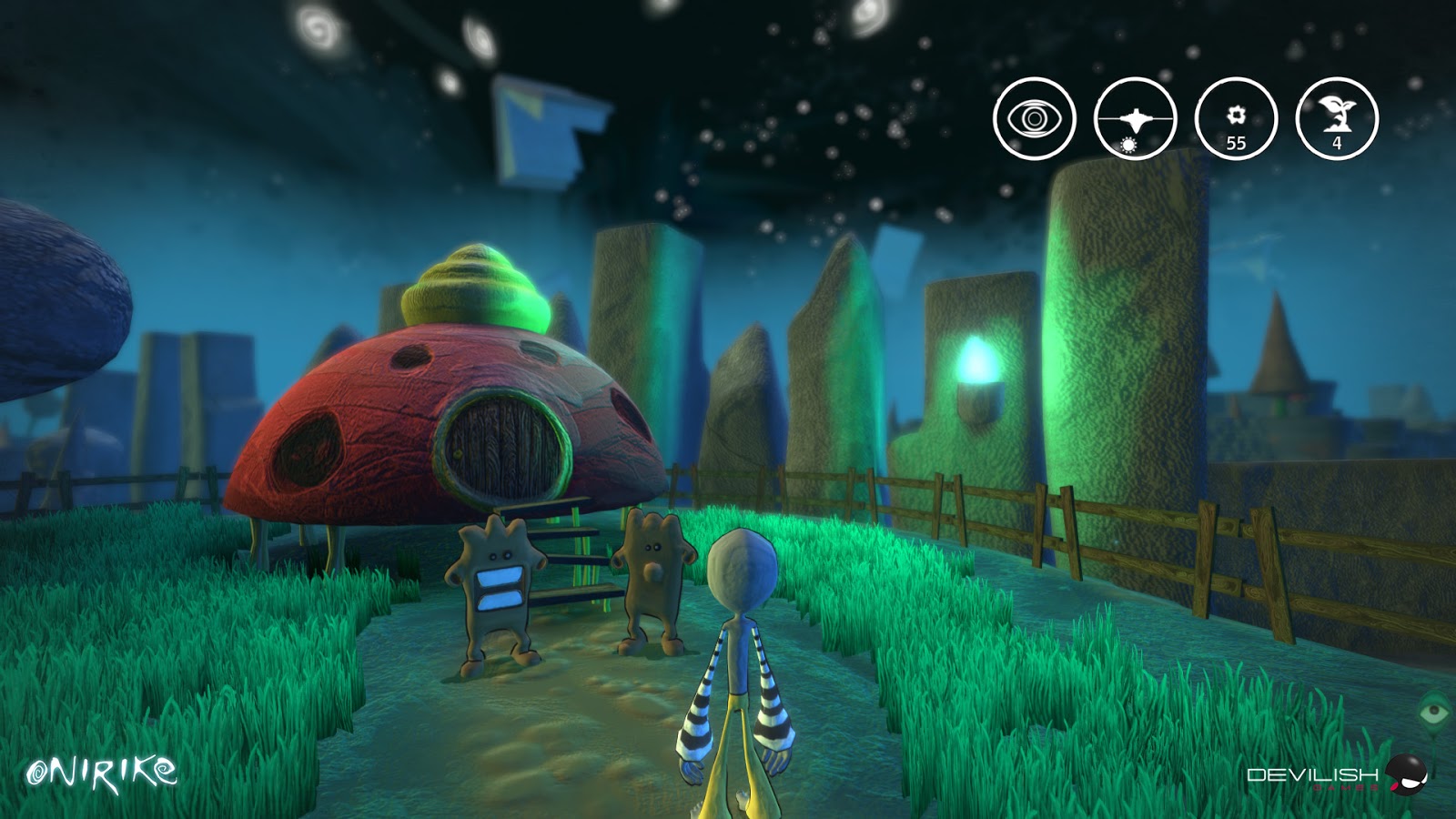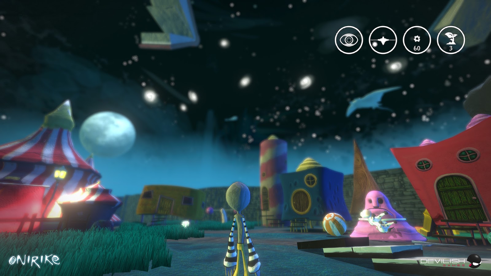Con respecto a Onirike, es un juego de plataformas 3D y aventura con algunos toques de puzle y está ambientado en un pequeño pero intrincado mundo abierto. La narrativa es un elemento muy importante en el juego y cuenta la historia de Prieto, un extraño ser que siente que el lugar donde se despierta noche tras noche no es su sitio. El objetivo principal del jugador será ayudar a Prieto a salir de ese lugar.