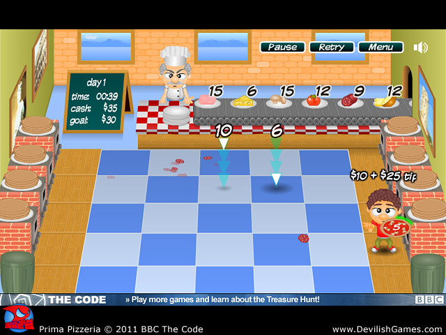 Hace justo una semana que anuncié que habíamos estado trabajando durante varios meses junto a Six to Start en varios videojuegos Flash para la serie de documentales matemáticos "The Code" de la BBC. El primer juego en ver la luz fue Froghopper y hoy tengo el placer de anunciar que ya está disponible el segundo juego, se llama Prima Pizzeria y lo podéis jugar desde este enlace.